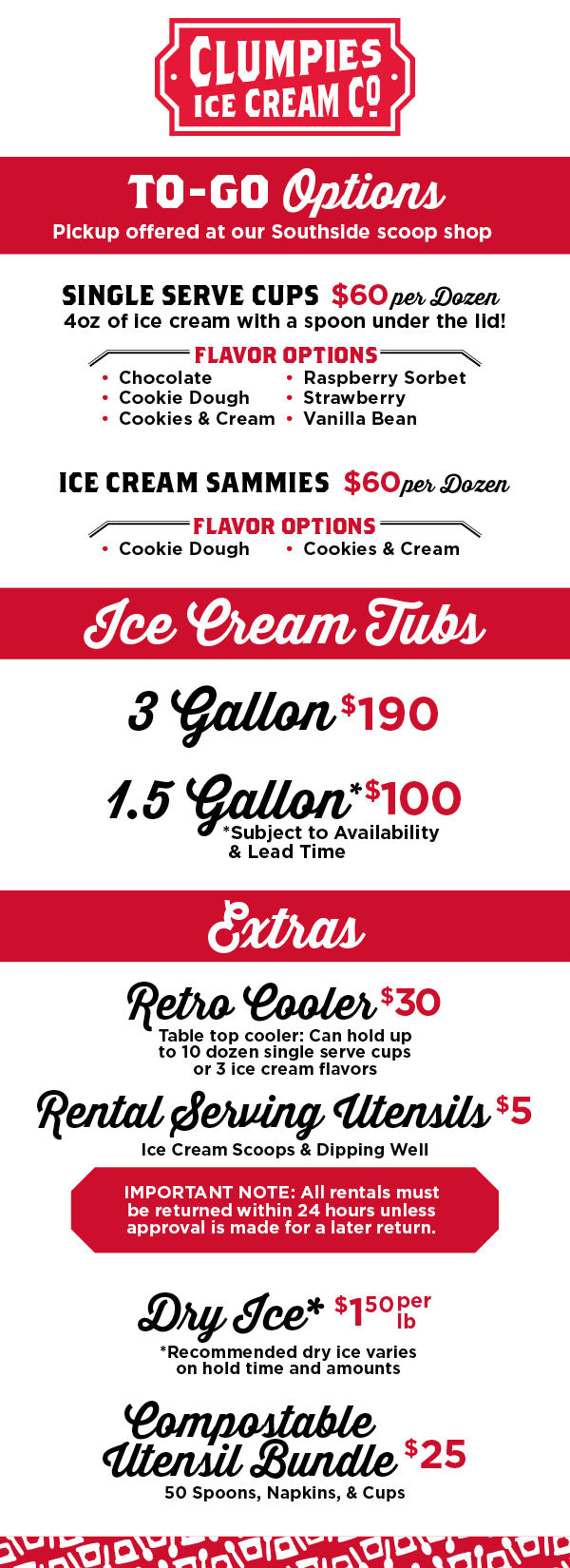 All pickups will be at our Southside scoop shop.